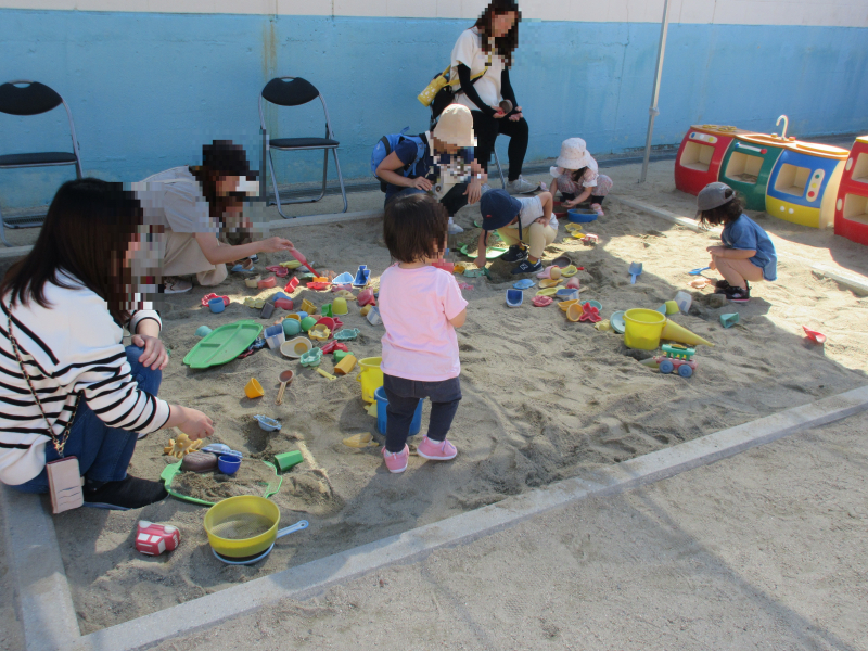 お砂場遊びや遊具、三輪車、ボール遊び、おままごとなど、