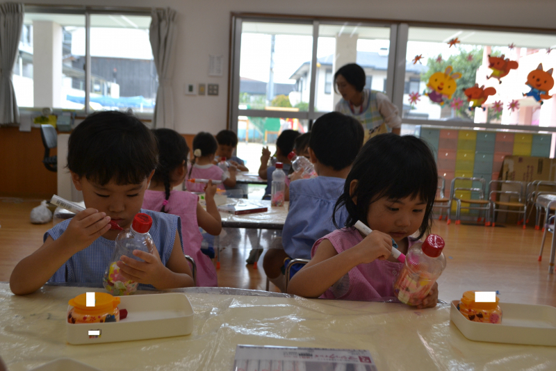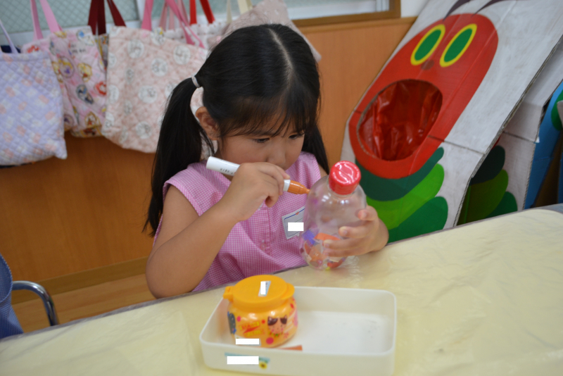 ひまわり組ではペットボトルのマラカスに油性ペンで