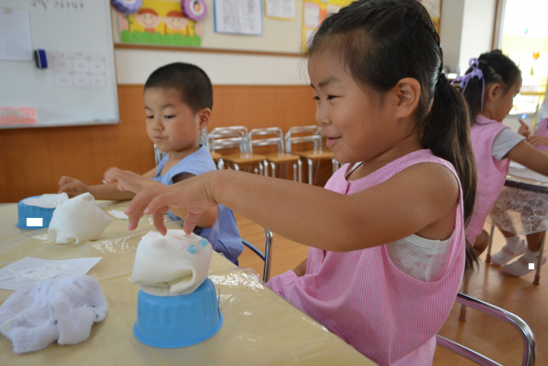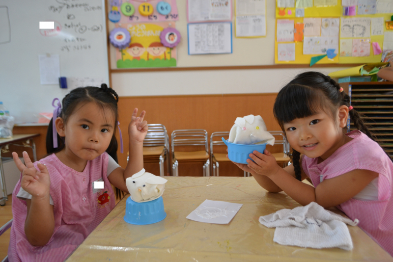 たんぽぽ組はふわふわのウサギ大福を仕上げていました♡