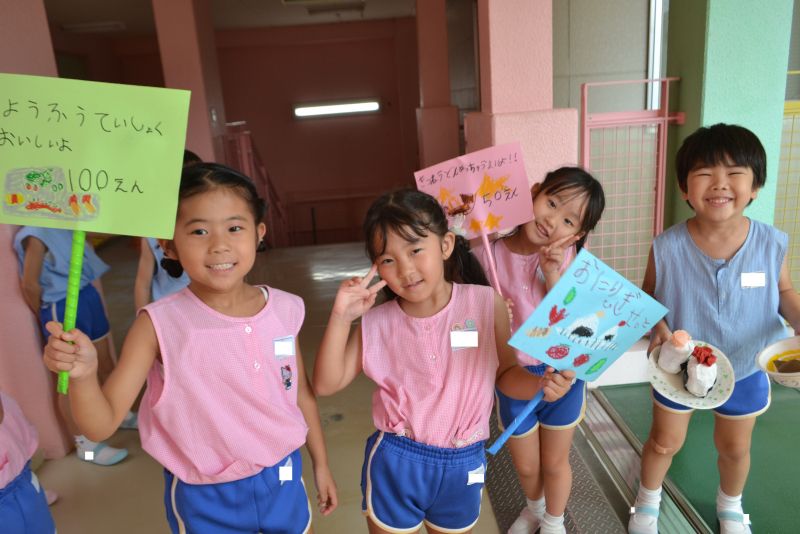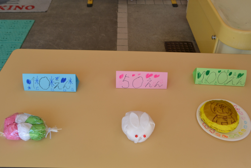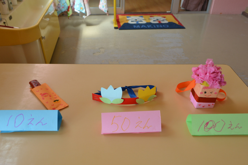 お金を払ったり、受け取ったりと、本当のお店屋さんになりきって