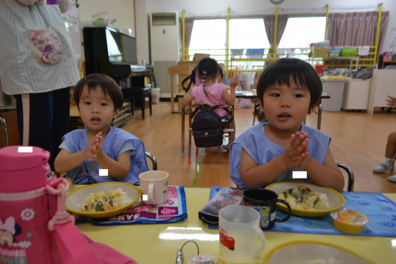 昼食の前にはお当番さんがみんなの前に立ち、お手本を見せてくれますよ☆彡