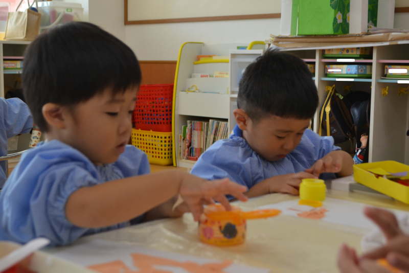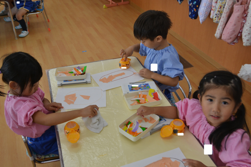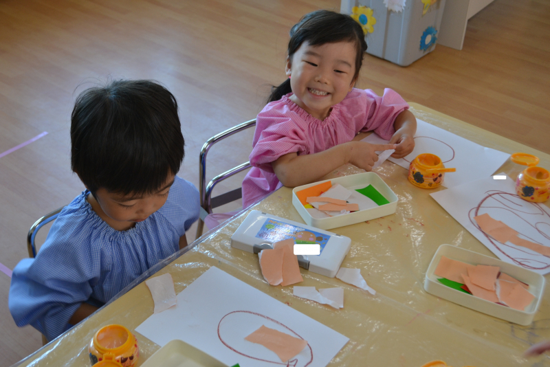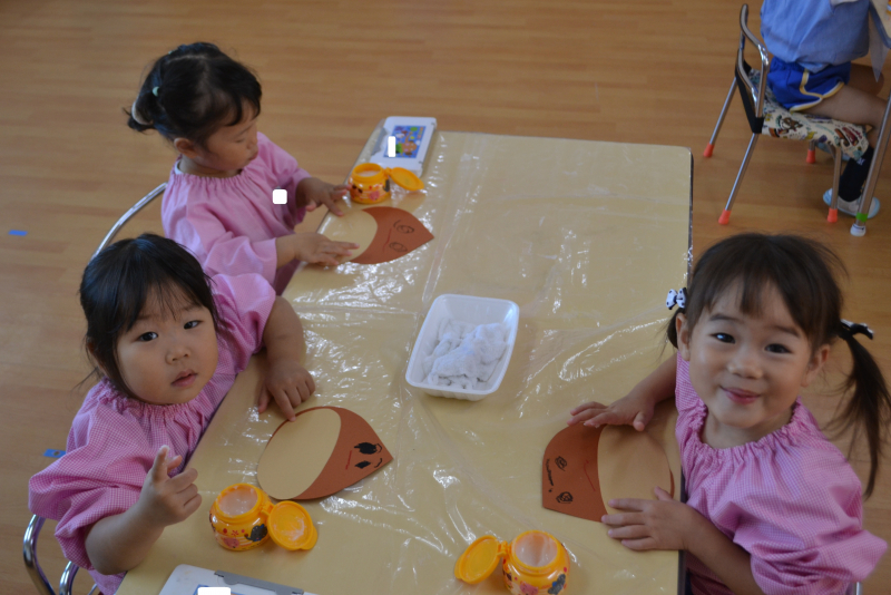 本日はふたば組さん、年少組さんが11月の個人製作を作っていましたよ♬