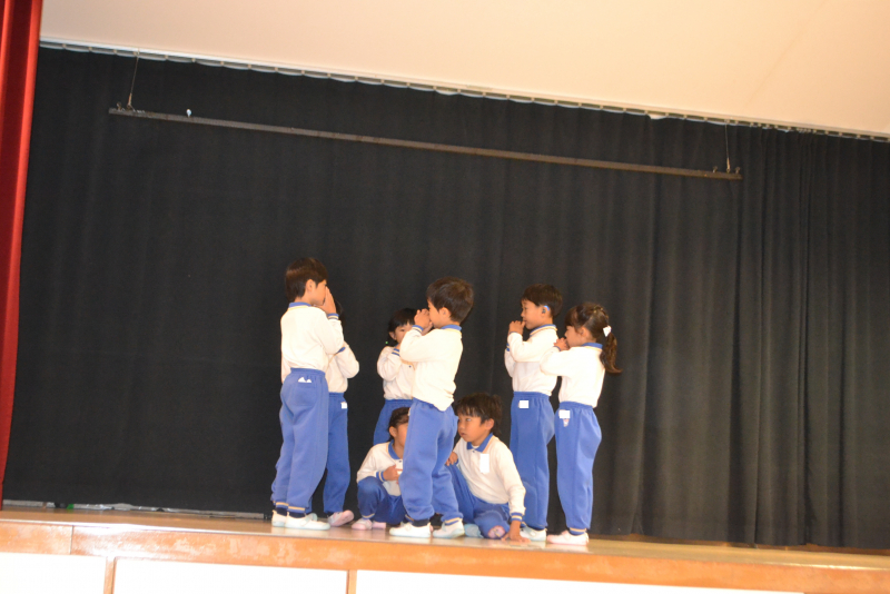 今日は年長組の劇・おゆうぎ会の舞台練習を覗いてみました!