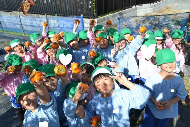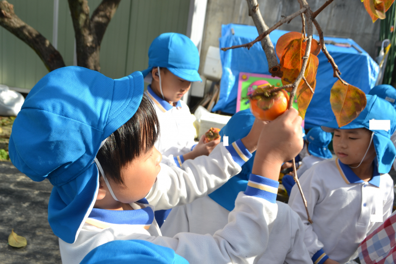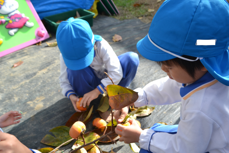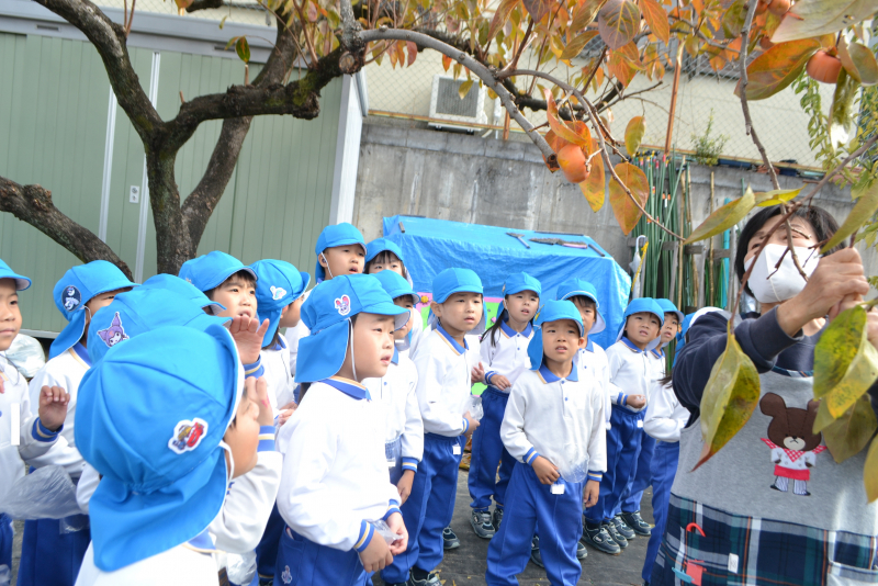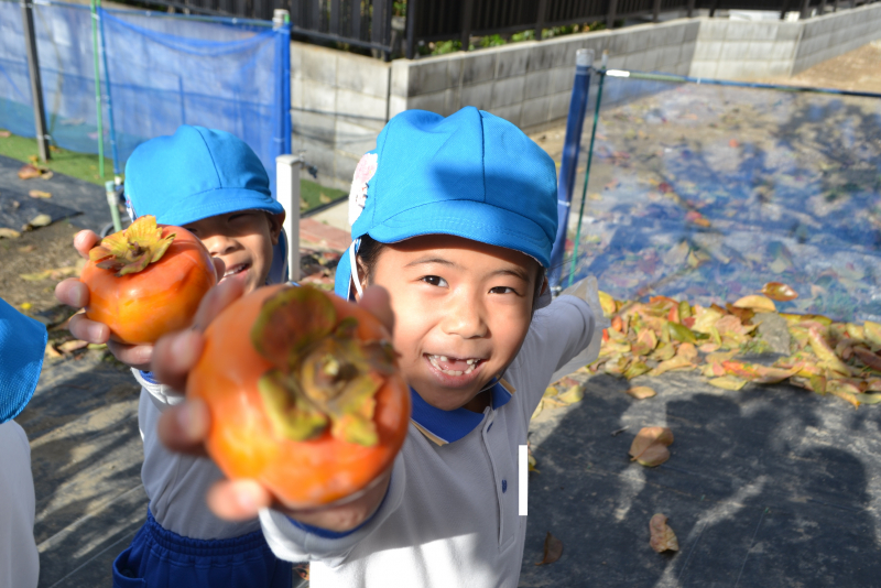 幼稚園で実った柿はどんな味がするのかな?楽しみですね♡