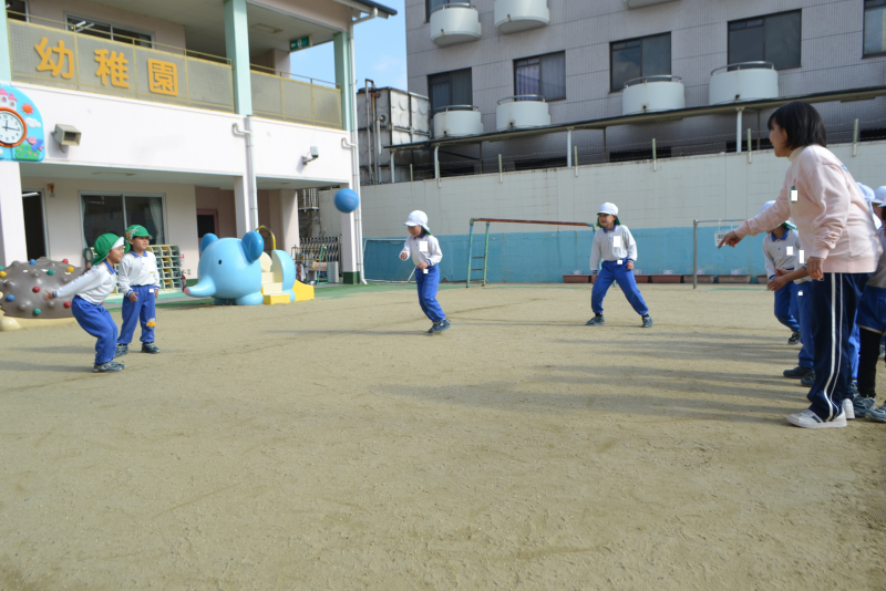 今日の年長組の体育では、ドッジボ-ルをしました!