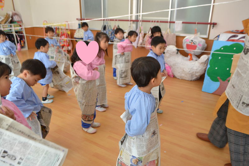 新聞紙を使ってみんなで遊びましたよ☆