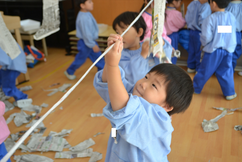 そして、新聞紙をびりびりとちぎってみました!