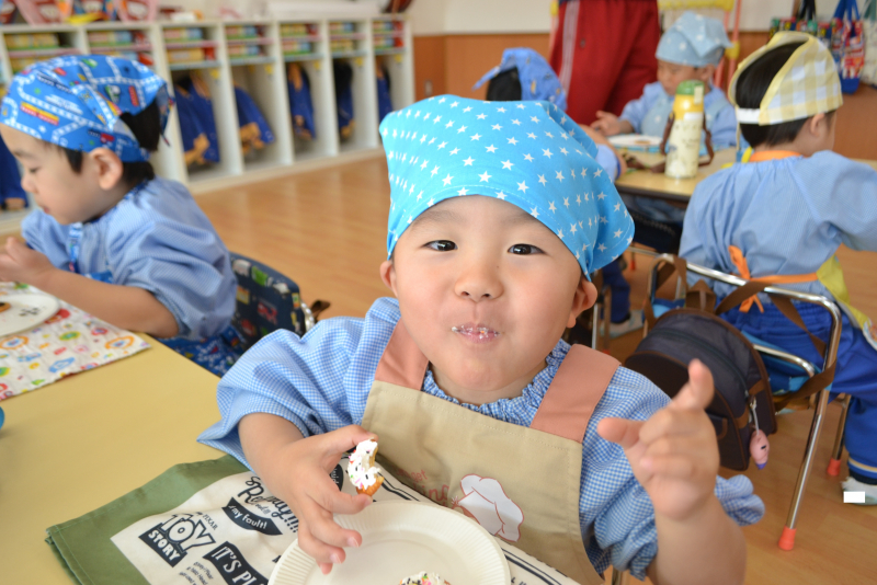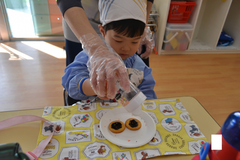 そして、カラフルなチョコレートスプレーを自分たちでかけましたよ♪