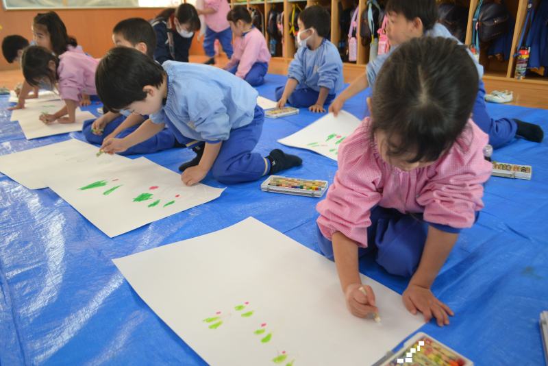 今日の年中組さんは、2月の絵に取り組んでいました!