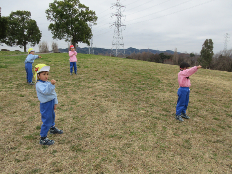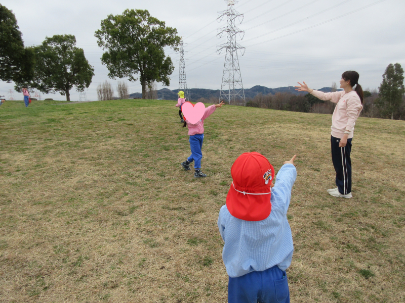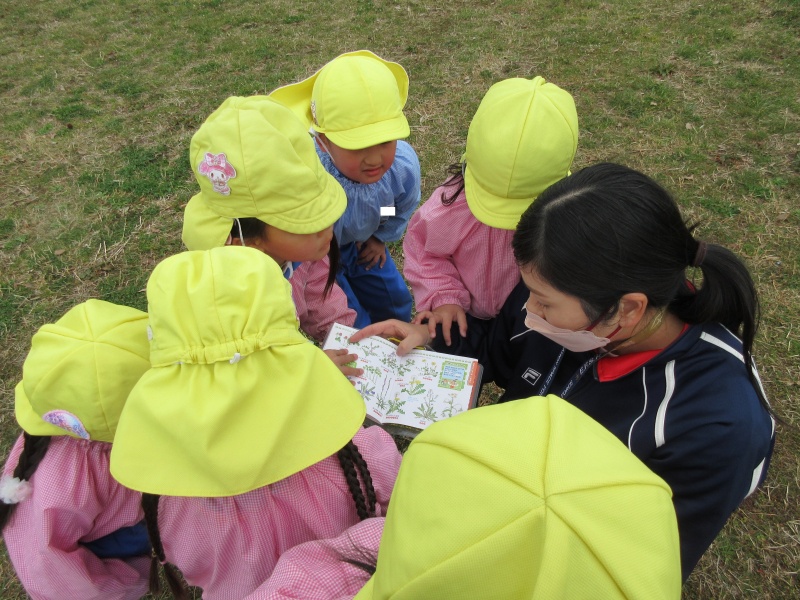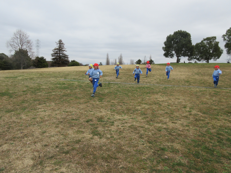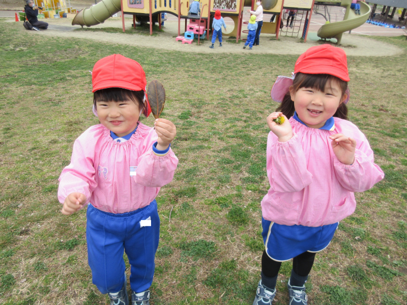 お花や葉っぱを探したり、かけっこをしたりと