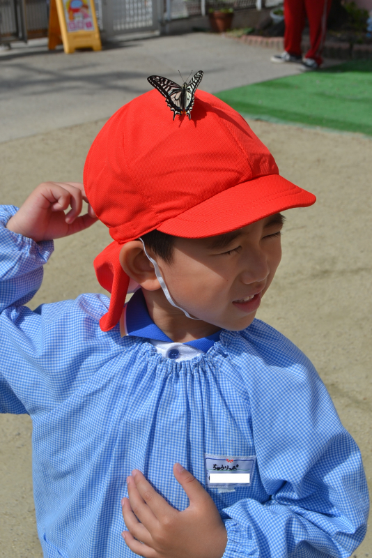 朝園庭でアゲハ蝶をお外に逃がしました☆