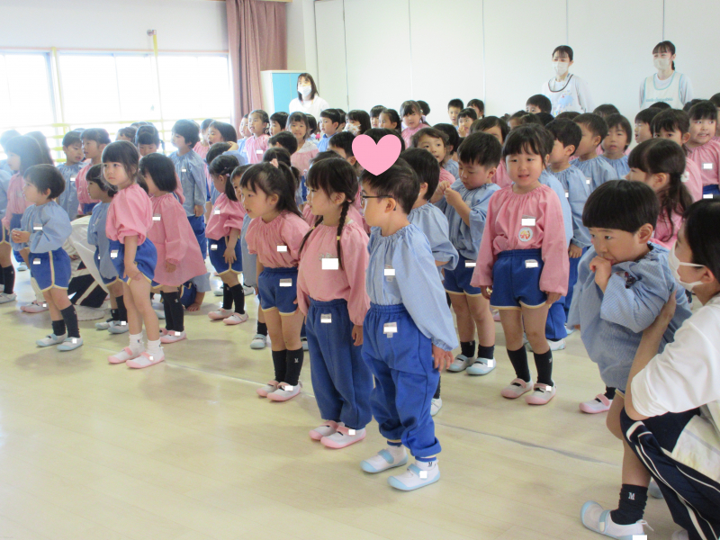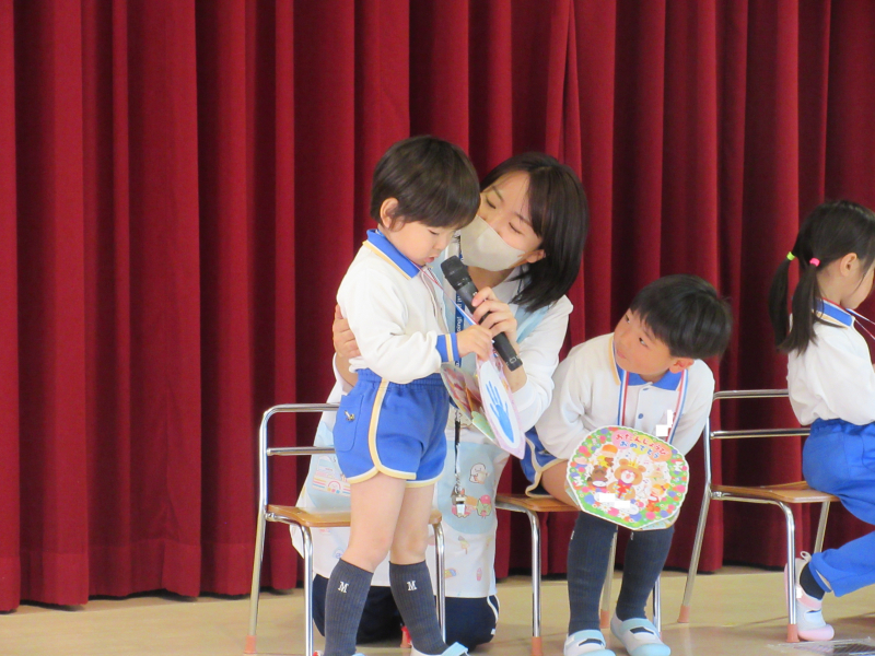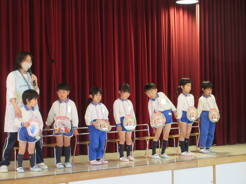 園長先生からペンダントをかけてもらい、大きな声でお礼を言うことができていました♬