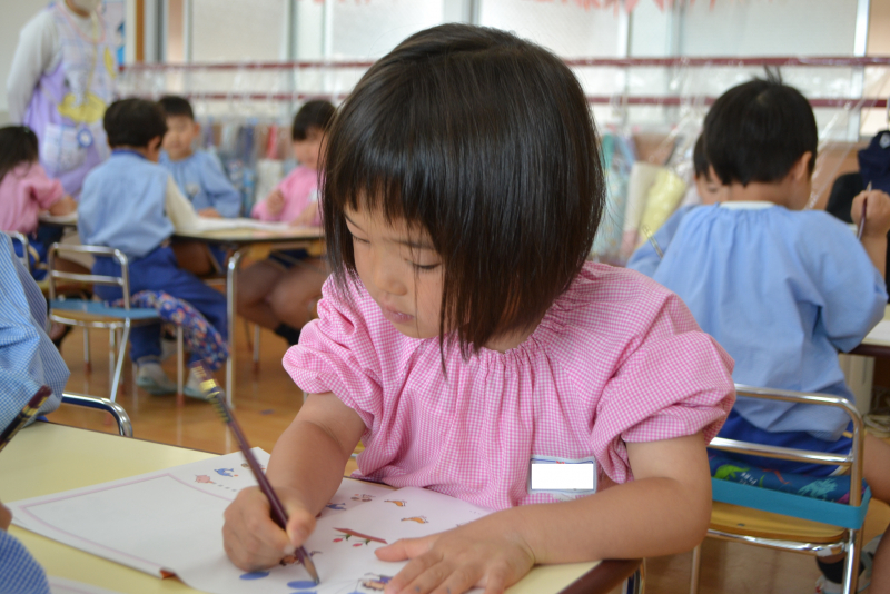 正しい姿勢や鉛筆の持ち方を確認し、丸を丁寧に書く練習や数字を数える練習をしました☆