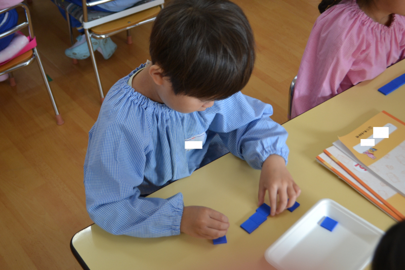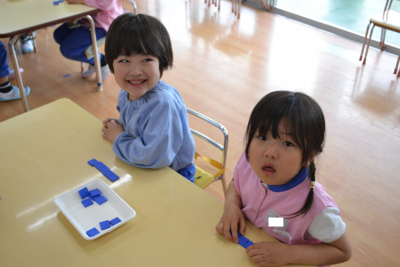 ちゃいるどすてっぷの先生が手を鳴らした数を数えてブロックを並べたり、